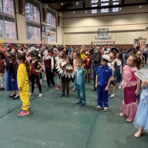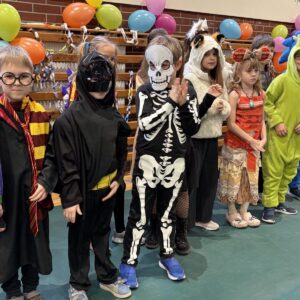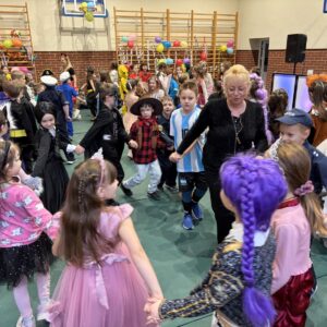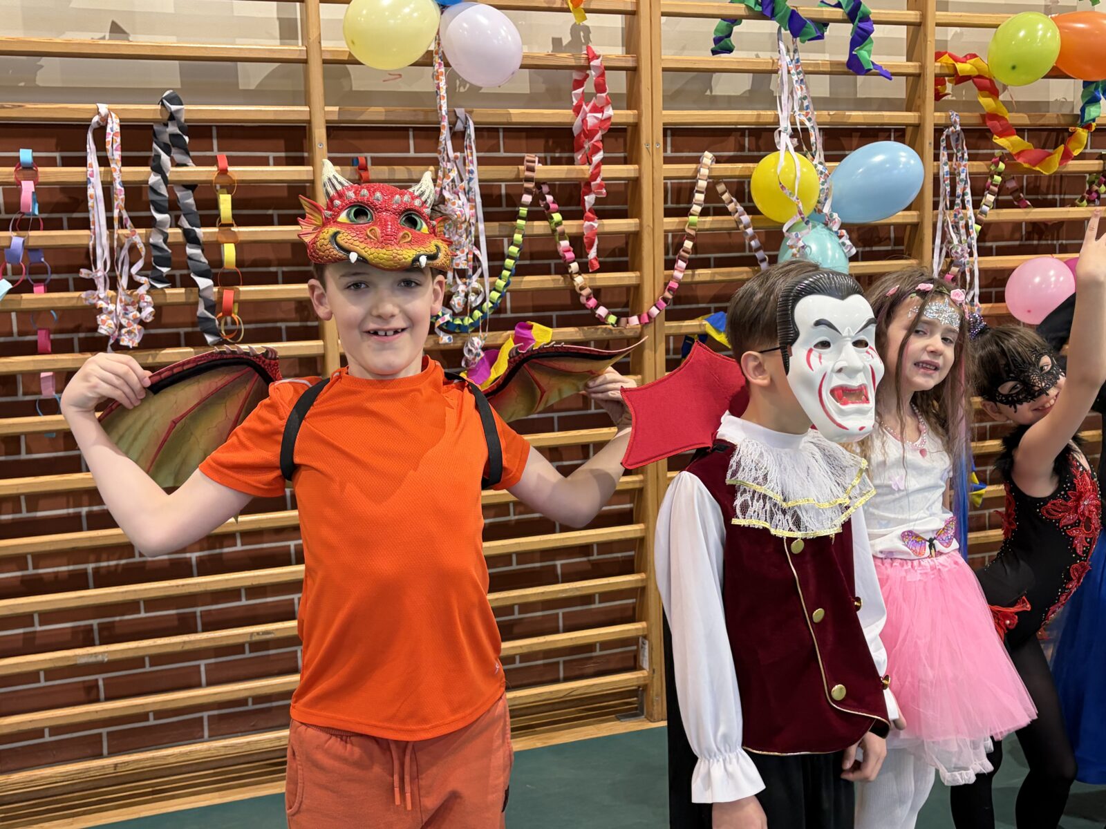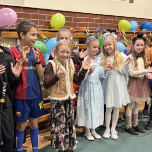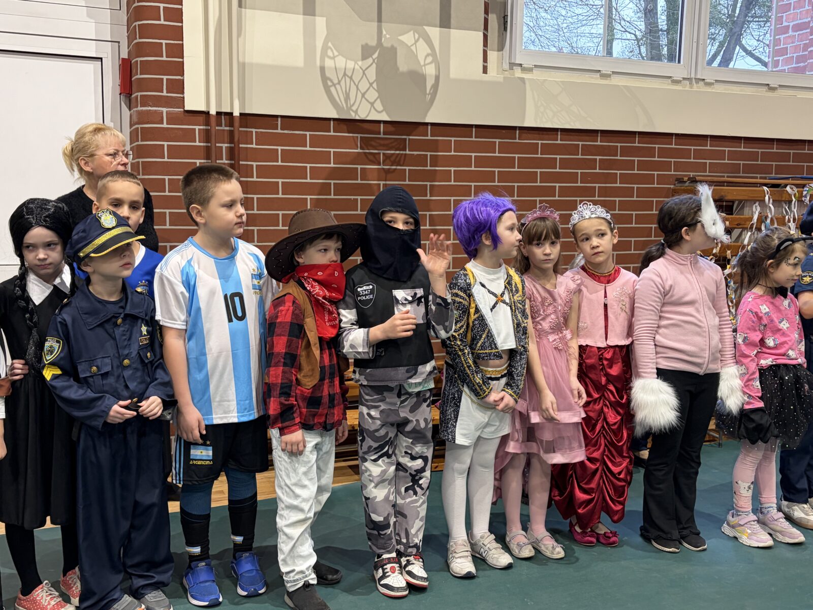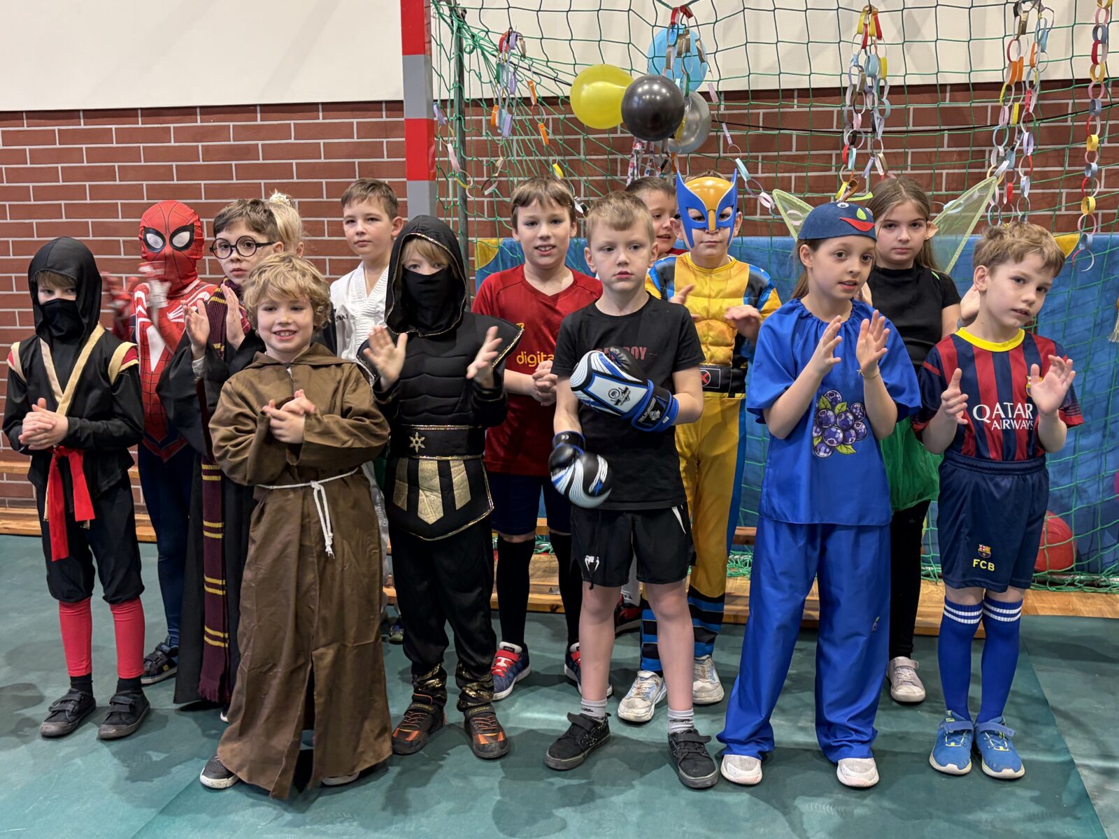… sto, a może i więcej! Nasza sala gimnastyczna zmieniła się w salę balową. Widok tylu tak wspaniale poprzebieranych dzieci aż zapierał dech! Różnokolorowi, weseli przebierańcy świetnie bawili się w piątek 30 stycznia, tańczyli i skakali w rytm muzyki, tworzyli barwne korowody i kółeczka, na wyścigi startowali w przeróżnych  zabawnych konkurencjach. Było głośno, wesoło, tanecznie… jednym słowem KARNAWAŁOWO!