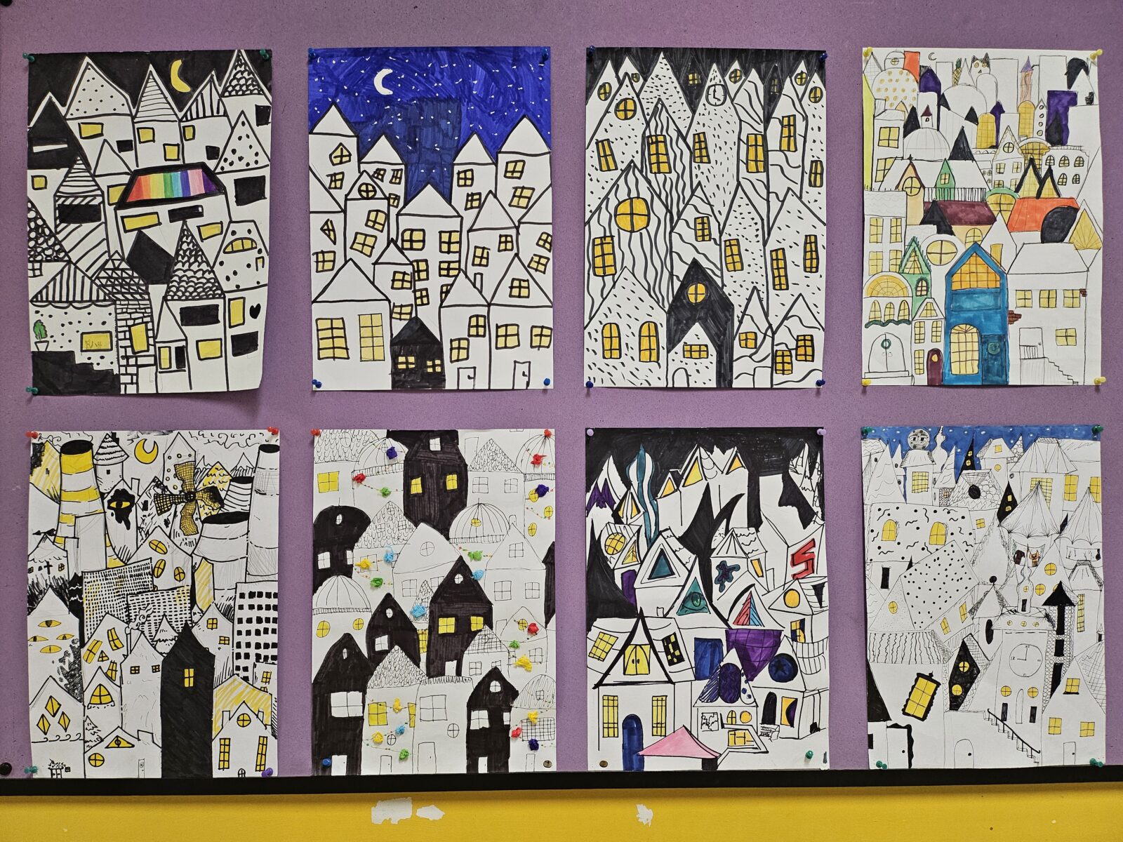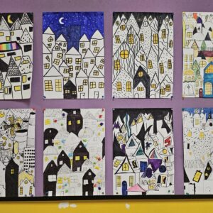 W czasie, gdy trwają ferie, szkolne korytarze świecą pustkami, a cisza w szkole aż dzwoni w uszach, galerie plastycznych prac uczniów zwracają uwagę bardziej niż na co dzień. Wariacje na temat obrazów Vincenta van Gogh’a, kubistyczne miasteczka, wieże wschodnich świątyń czy artystyczne wizje drzewa… Rysunki i malunki wykonane z dużą starannością i – co tu dużo mówić – z poczuciem piękna, cieszą oko, zachwycają, zachęcają do zatrzymania się i podziwiania. Drodzy uczniowie klas 4 – 7, nie ograniczajcie swojej wyobraźni i twórzcie, twórzcie, twórzcie…!
