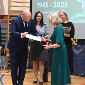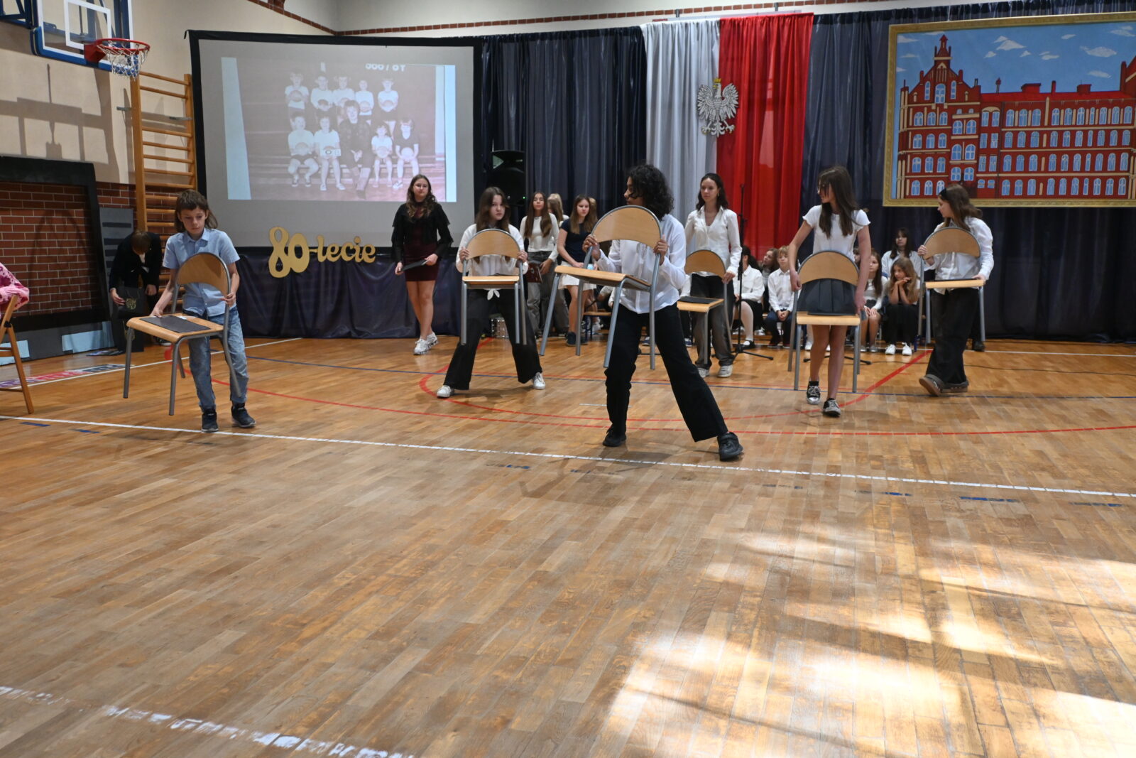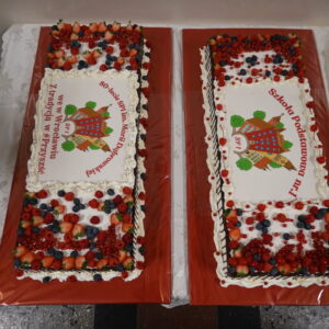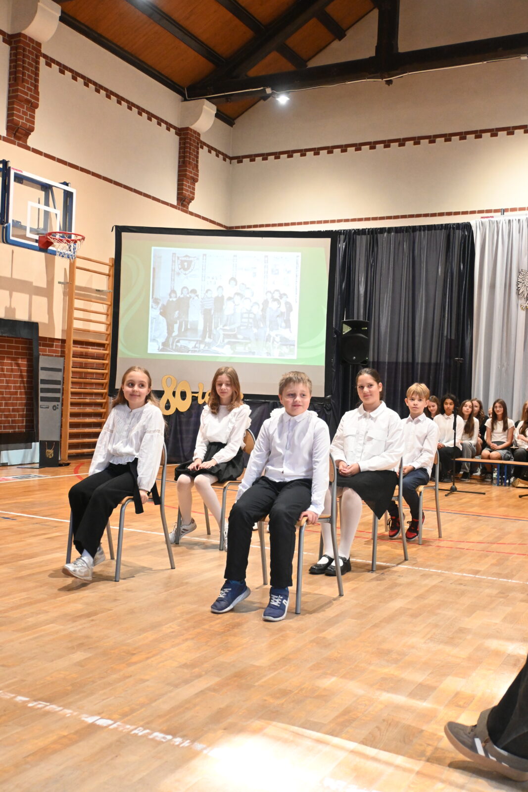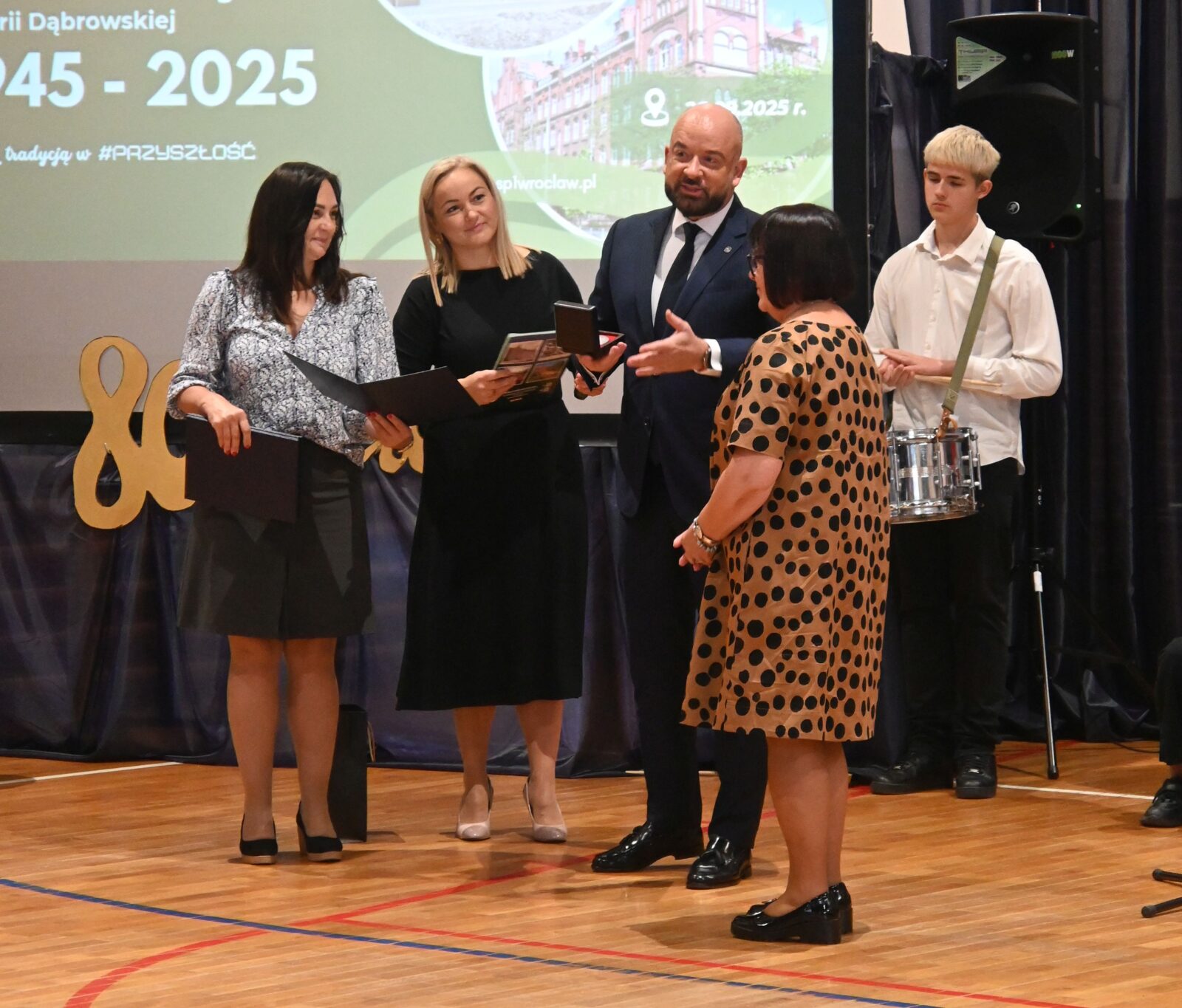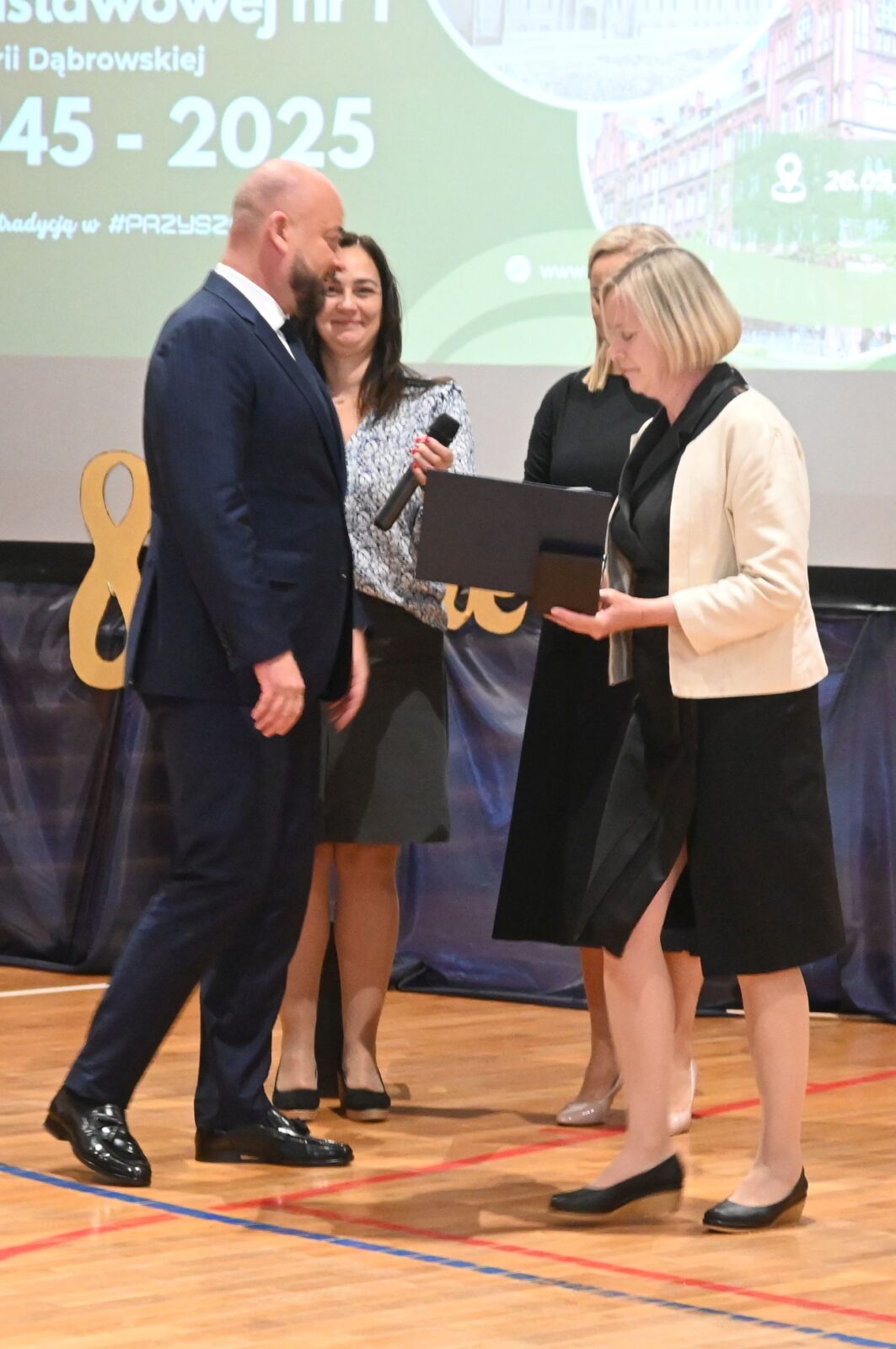 W piątek 26 września 2025 roku w naszej szkole obchodziliśmy wyjątkowe święto – jubileusz 80-lecia istnienia pierwszej utworzonej w powojennym Wrocławiu podstawówki – naszej Jedynki. Wiele tygodni przygotowań, prób, pracy uczniów, nauczycieli, pracowników sprawiło, że dzień ten zapamiętamy na długo. Podniosłość (ale bez zadęcia!), wzruszenia (czasami z łzami), wspomnienia (dużo wspomnień), uśmiechy  (zadowolenie, radość) – to wszystko było i wiele jeszcze więcej… W części oficjalnej przemawiała Pani Dyrektor Katarzyna Zwierzyńska-Paluszek, przemawiał, składał życzenia i wręczał medale Prezydent Wrocławia Jacek Sutryk, był też czas dla Pani Dyrektor Renaty Bohdanowicz (20 lat na stanowisku 1996-2016). Potem śliczne przedstawienie w wykonaniu dzieci o tym, jak uczyliśmy się kiedyś, jak uczymy się dziś i co w szkole najważniejsze. Następnie odsłoniliśmy tablicę pamiątkową przy sali chemiczno-fizycznej, której nadaliśmy imiona Antoniego Goncerzewicza i Barbary Platis (odbyła się też nowoczesna lekcja  chemii). Na parterze goście zwiedzali sale tradycji, oglądali tablice z naszymi znanymi absolwentami, robili sobie zdjęcia w szkolnej fotobudce, składali (pisali) życzenia dla szanownej Jubilatki (naszej Szkoły). W kawiarenkach słychać było gwar wspominających dawne czasy absolwentów, nauczycieli, pracowników… Pojawił się też wielki tort, jak na urodziny przystało! Dziękujemy wszystkim Gościom za bycie z nami w tym ważnym dla nas dniu, dziękujemy za życzenia, dobre słowa  i prezenty. Dziękujemy wszystkim, którzy przyczynili się do tego, że było po prostu PIĘKNIE!