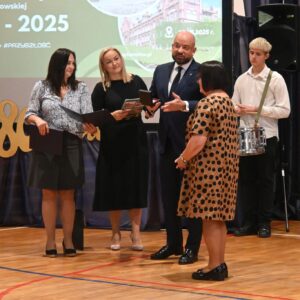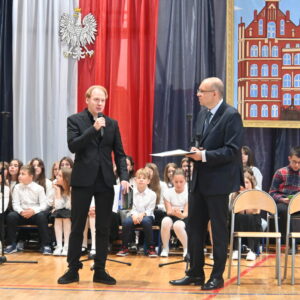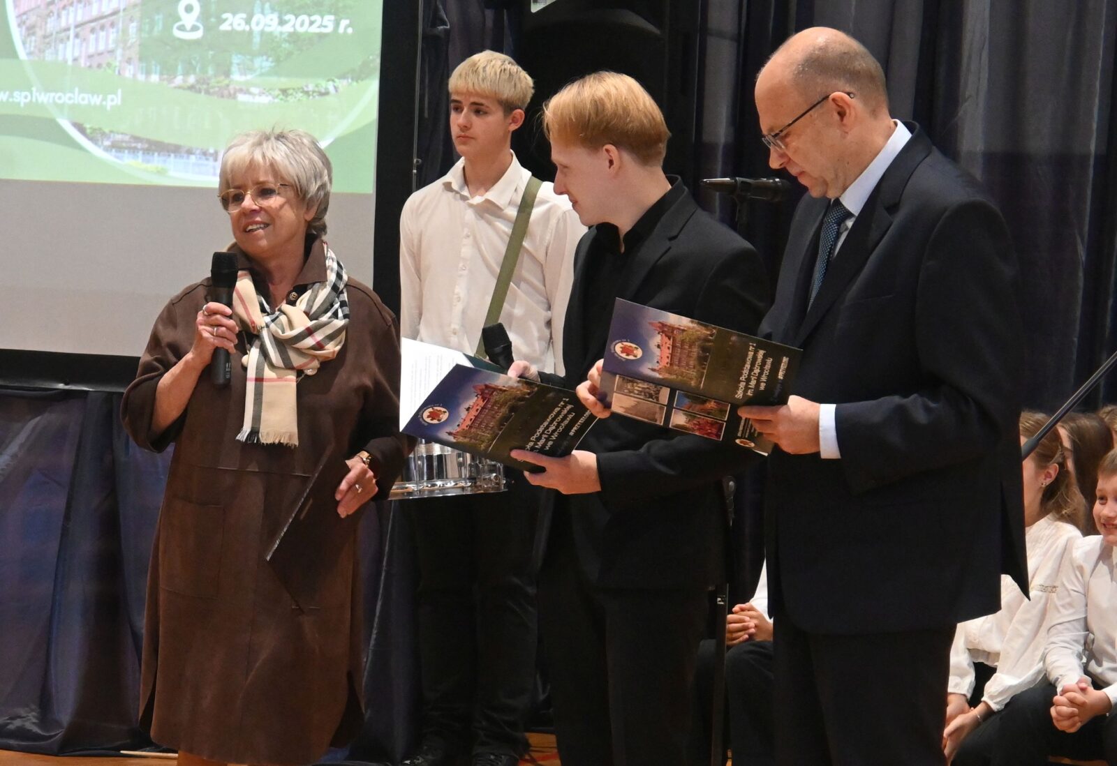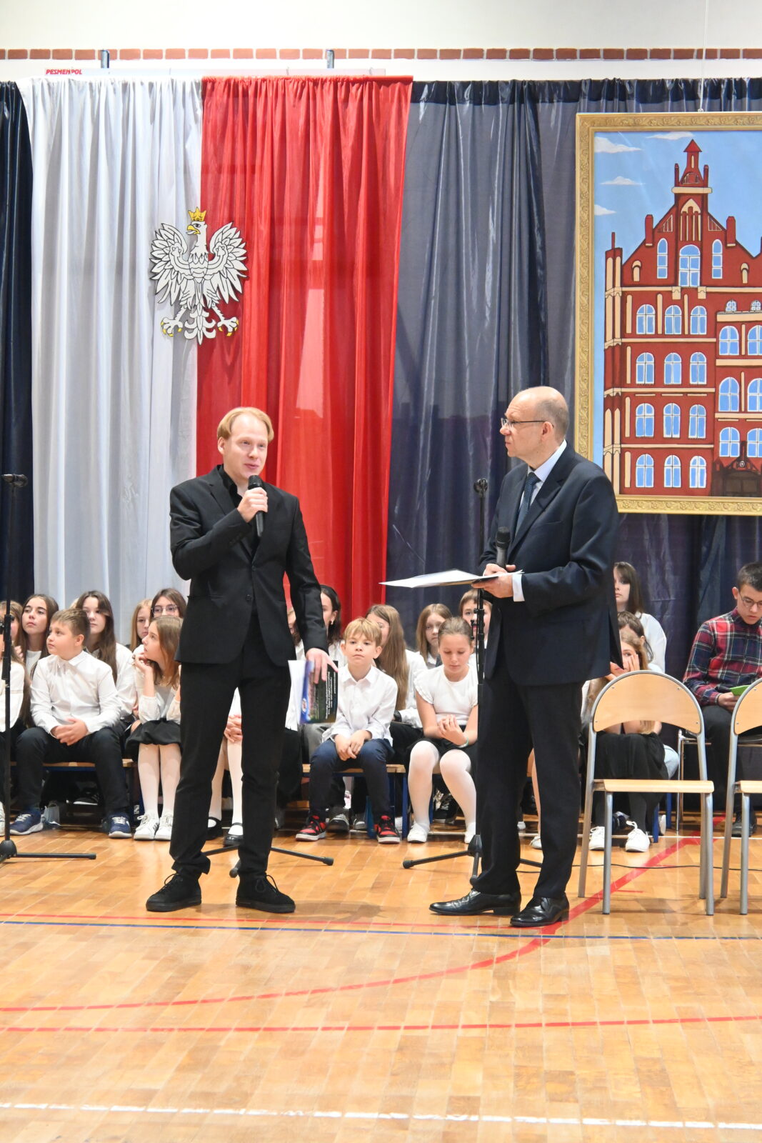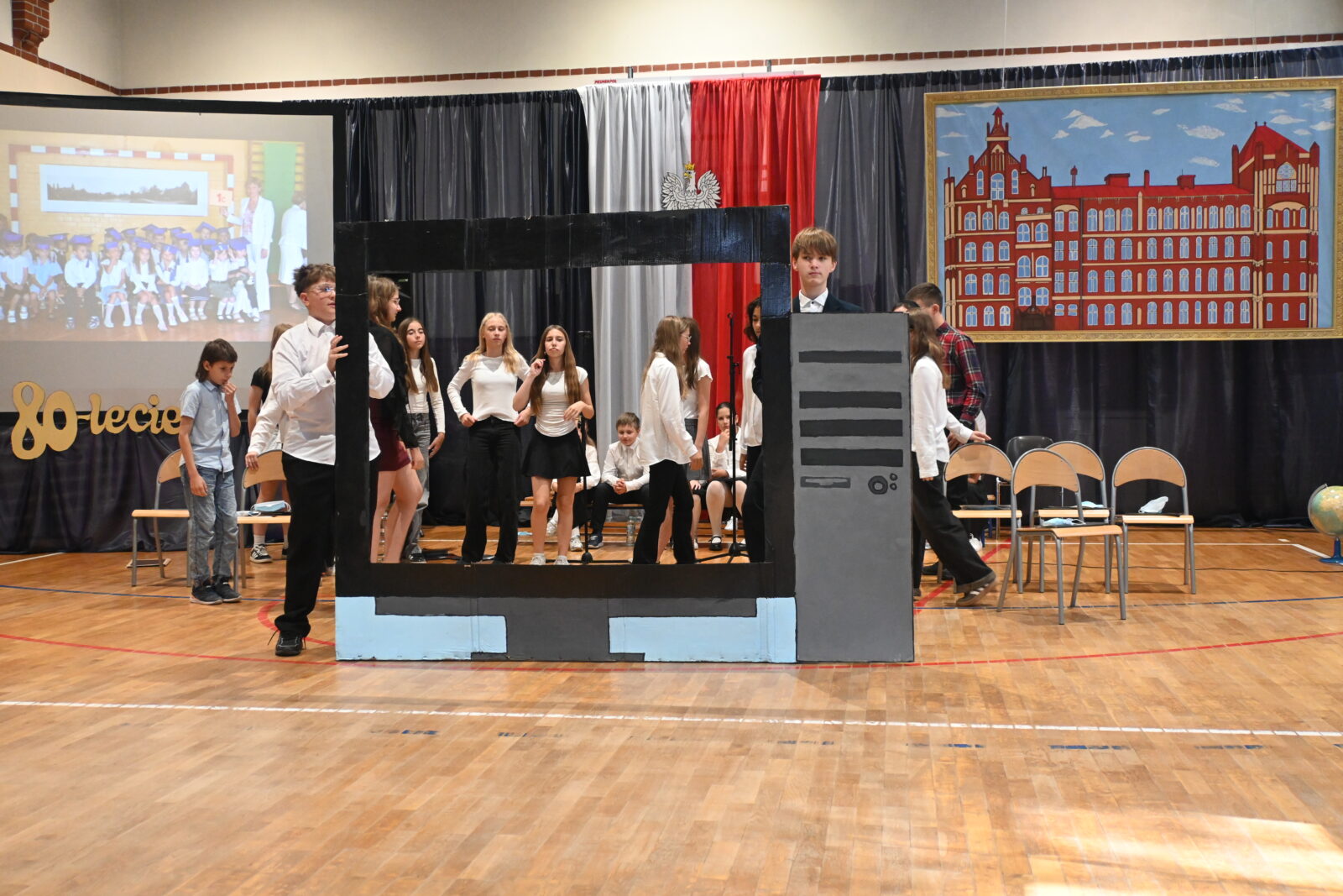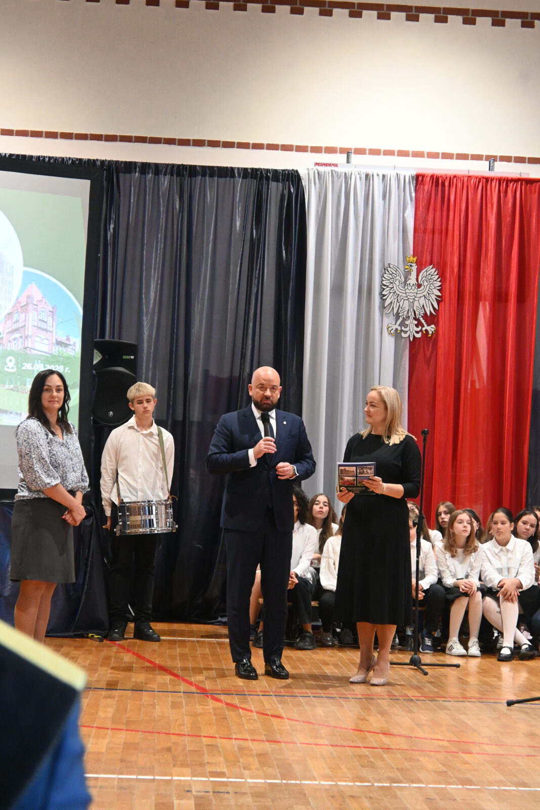 W piątek 26 września 2025 roku w naszej szkole obchodziliśmy wyjątkowe święto – jubileusz 80-lecia istnienia pierwszej utworzonej w powojennym Wrocławiu podstawówki – naszej Jedynki. Wiele tygodni przygotowań, prób, pracy uczniów, nauczycieli, pracowników sprawiło, że dzień ten zapamiętamy na długo. Podniosłość (ale bez zadęcia!), wzruszenia (czasami z łzami), wspomnienia (dużo wspomnień), uśmiechy  (zadowolenie, radość) – to wszystko było i wiele jeszcze więcej… W części oficjalnej przemawiała Pani Dyrektor Katarzyna Zwierzyńska-Paluszek, przemawiał, składał życzenia i wręczał medale Prezydent Wrocławia Jacek Sutryk, był też czas dla Pani Dyrektor Renaty Bohdanowicz (20 lat na stanowisku 1996-2016). Potem śliczne przedstawienie w wykonaniu dzieci o tym, jak uczyliśmy się kiedyś, jak uczymy się dziś i co w szkole najważniejsze. Następnie odsłoniliśmy tablicę pamiątkową przy sali chemiczno-fizycznej, której nadaliśmy imiona Antoniego Goncerzewicza i Barbary Platis (odbyła się też nowoczesna lekcja  chemii). Na parterze goście zwiedzali sale tradycji, oglądali tablice z naszymi znanymi absolwentami, robili sobie zdjęcia w szkolnej fotobudce, składali (pisali) życzenia dla szanownej Jubilatki (naszej Szkoły). W kawiarenkach słychać było gwar wspominających dawne czasy absolwentów, nauczycieli, pracowników… Pojawił się też wielki tort, jak na urodziny przystało! Dziękujemy wszystkim Gościom za bycie z nami w tym ważnym dla nas dniu, dziękujemy za życzenia, dobre słowa  i prezenty. Dziękujemy wszystkim, którzy przyczynili się do tego, że było po prostu PIĘKNIE!